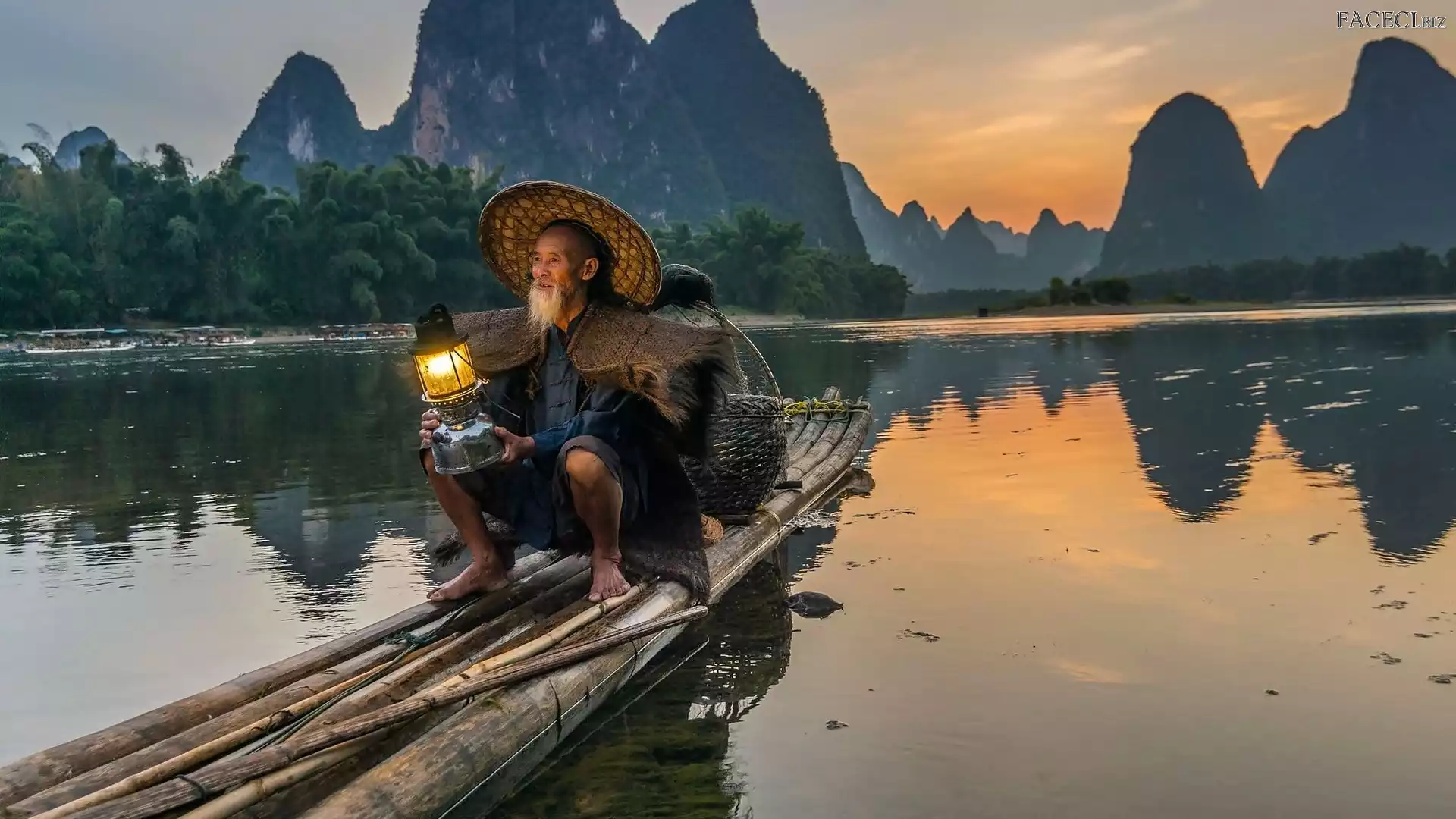 Lampa, Łódka, Góry, Człowiek, Starzec, Rzeka, Stary - faceci.biz